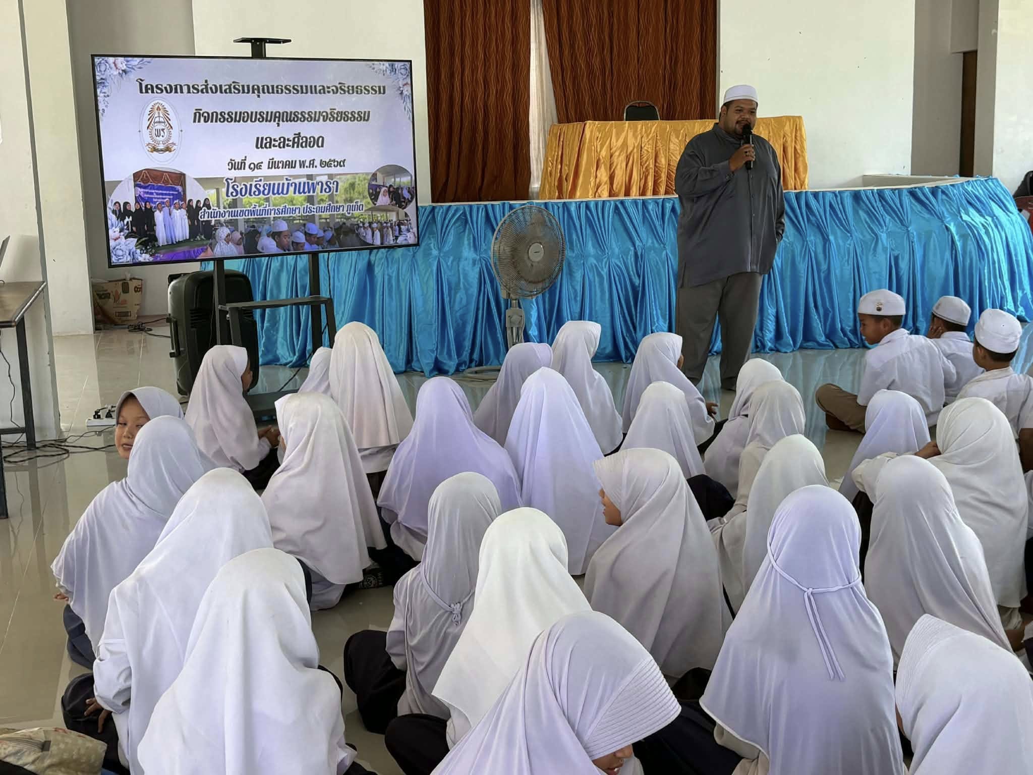 | วันเสาร์ที่ 14 มีนาคม 2569 โรงเรียนบ้านพารา ได้จัดกิจกรรมอบรมคุณธรรม จริยธรรม โดยมีกิจกรรม ดังนี้ นักเรียนที่นับถือศาสนาพุทธเรียนรู้เกี่ยวกับกระบวนการทางพระพุทธศาสนา นักเรียนที่นับถือศาสนาอิสลามเรียนรู้เกี่ยวกับการประกอบพิธีกรรมทางศาสนาอิสลาม ละหมาสุนัตดุฮา อ่านยาซีน บทเรียนแห่งความเงียบ การละศีลอด ละหมาด มักริบ อีชา และตะรอเวียะ โดยได้รับความร่วมมือจากคณะกรรมการสถานศึกษาขั้นพื้นฐานโรงเรียนบ้านพารา ทีมงานจิตอาสา 4.0 และภาคีเครือข่าย |