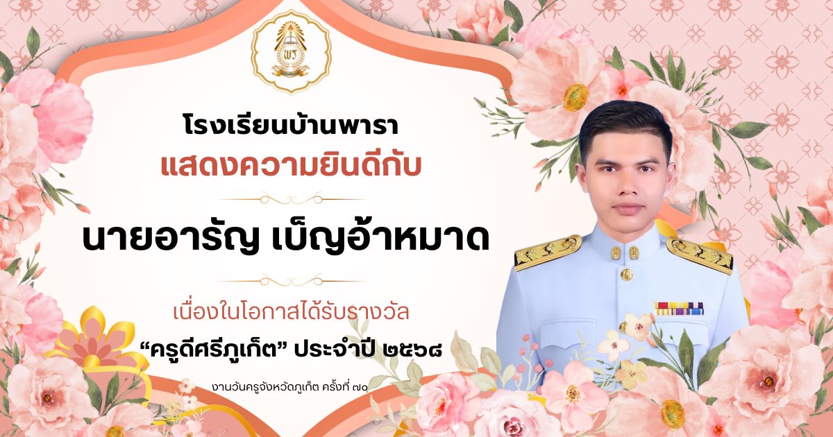 ✨นายอารัญ เบ็ญอ้าหมาด ครูชำนาญการโรงเรียนบ้านพารา เนื่องในโอกาสได้รับรางวัล ”ครูดีศรีภูเก็ต“ ประจำปี 2568