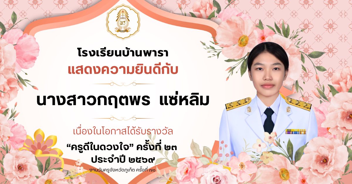 ✨นางสาวกฤตพร แซ่หลิม ครูโรงเรียนบ้านพารา เนื่องในโอกาสได้รับรางวัล ”ครูดีในดวงใจ“ ครั้งที่ 23 ประจำปี 2569